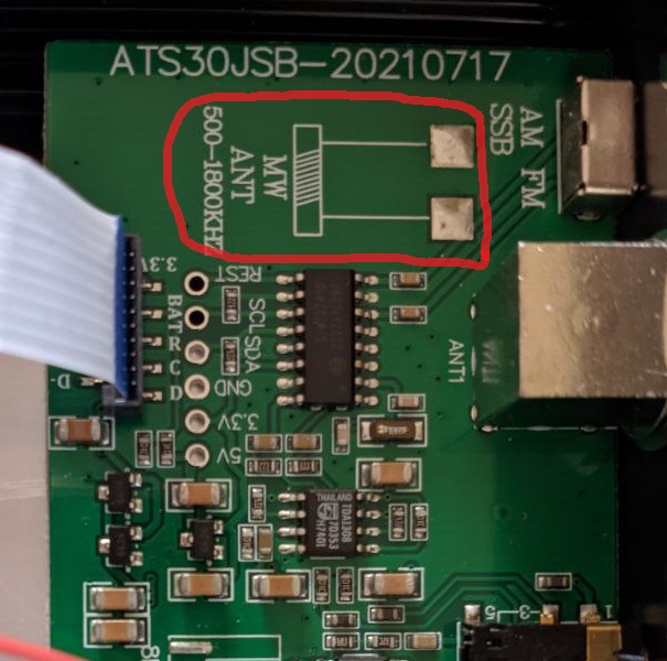 Прошил версией 4.13 Аэро свежекупленный у китайцев приемник с надписью ATS25X1. Нравится. Есть вопросы.1. Иконка батарей не информтивна. Постоянно в одном виде. Версия китайского была 5.2 и там батарейка показывала напряжение сначала, потом - проценты. Что бы так же было - нужно что то в файликах конфигурационных поправить? 2. На задней крышке (см. скрин с ютуба) есть что то вроде антеннки - травленая(?) зигзагообразная полоска. Для чего это? Можно подпаяться с ECP32 чтобы был WiFi?. 2. На плате есть две площадки и маркировка "MW ANT 500-1800KHz". Сюда можно/нужно что то подпаять?